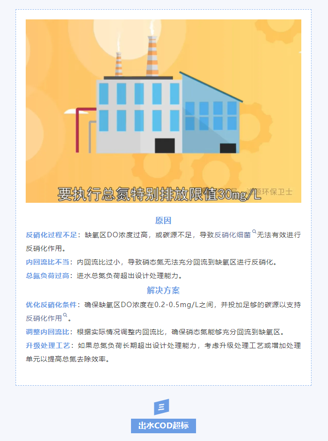 出水氨氮、TN、COD超標(biāo)的原因及解決方案 咨詢熱線:15638187355 在線咨詢 產(chǎn)品詳細(xì) 上一篇:《人民日報》: 再生水為城市補充第二水源 下一篇:你真的了解除氟劑嗎? 用手機看 拍下二維碼,信息隨身看 試試用手機掃一掃,在你手機上繼續(xù)觀看此頁面。